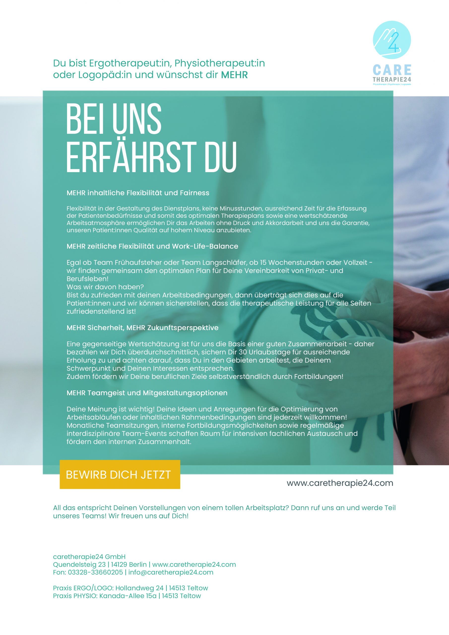 © caretherapie24 | Ihr Therapiezentrum für Physiotherapie, Ergotherapie und Logopädie in Teltow